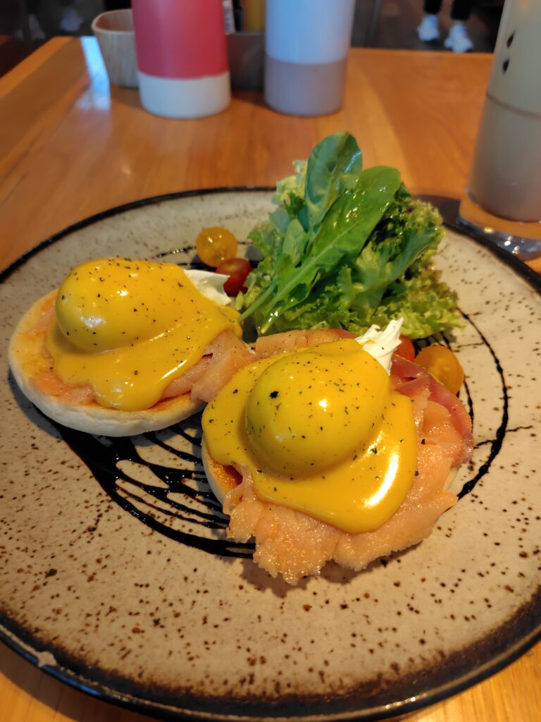 それで僕が選んだのは、**タイミルクティーとエッグベネディクト(燻製サーモン付き)**🐟🍳