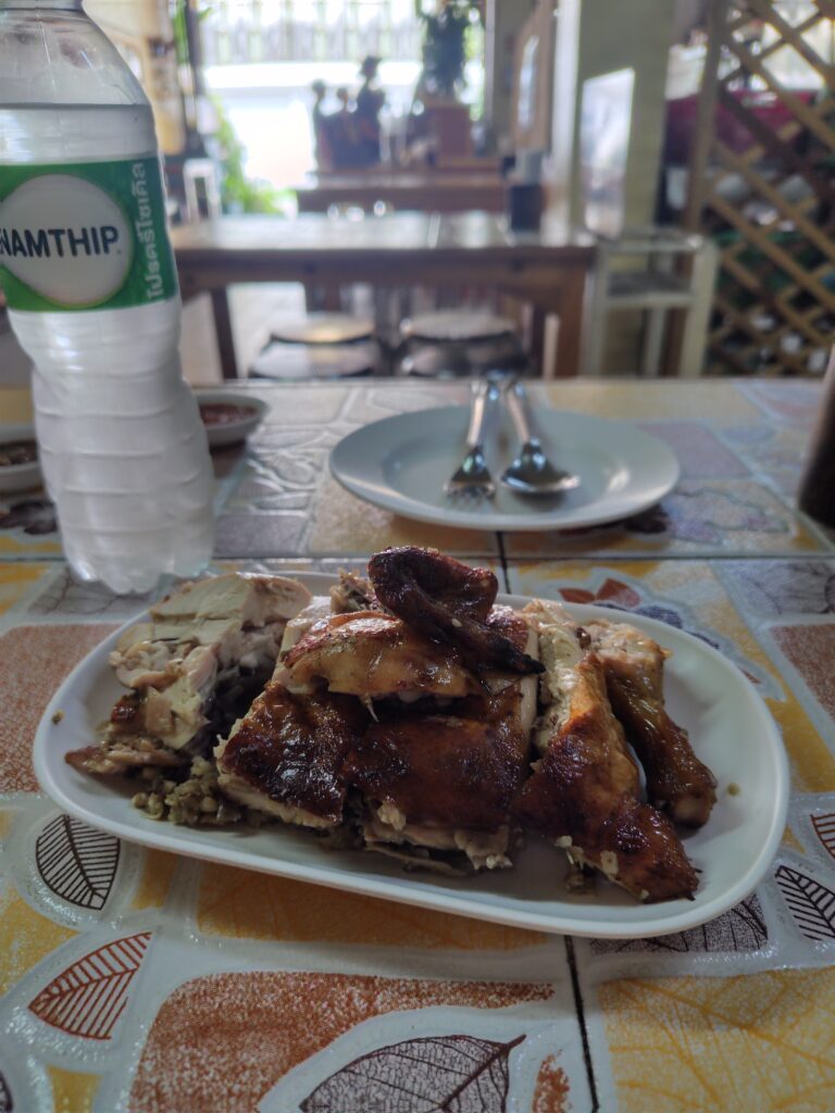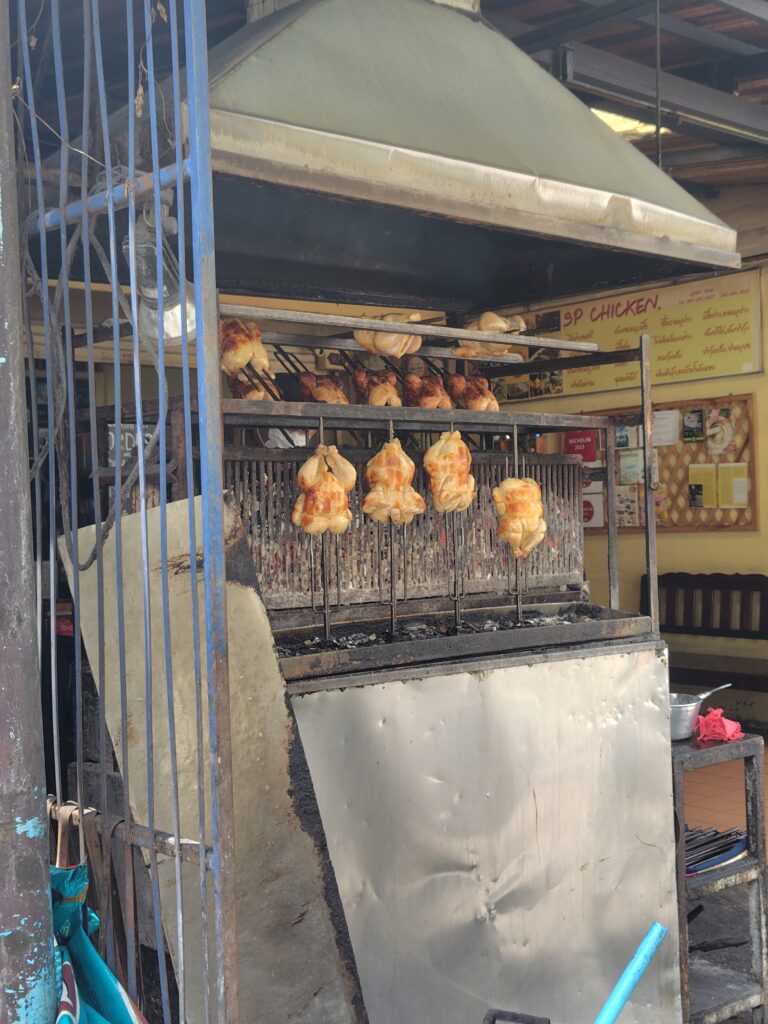 メインの料理は**ガイヤーン(Gai Yang)**と呼ばれる炭火焼きチキン。