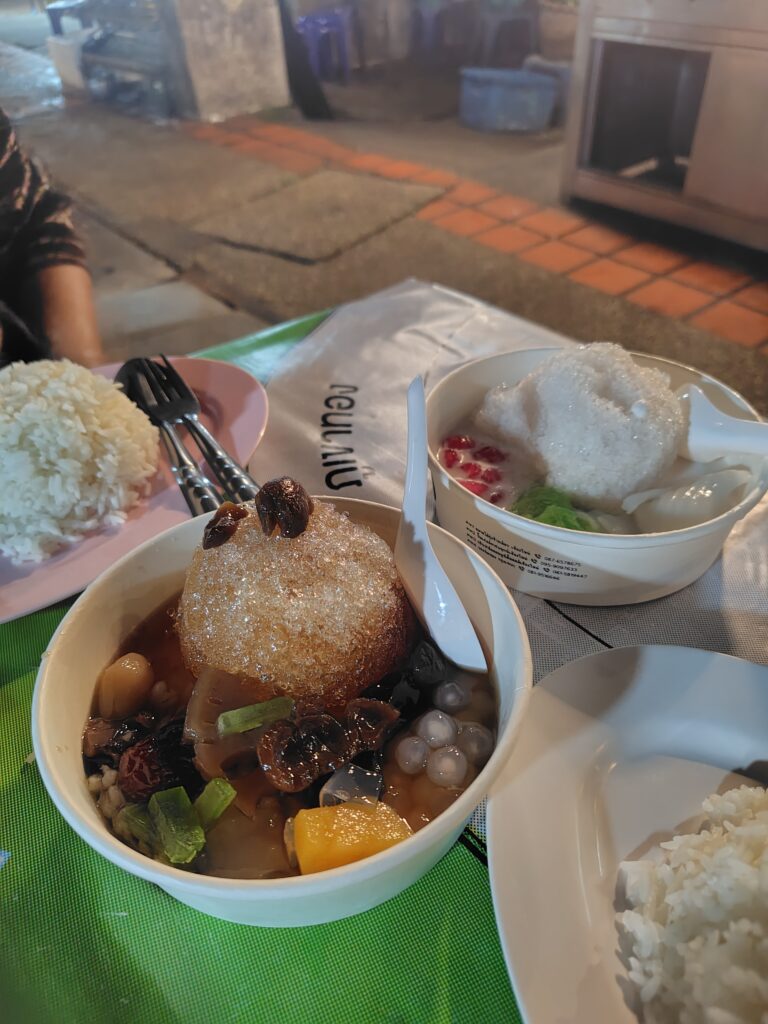 「チェンマイ・ナイトマーケット」でタイ料理のカオカムーをいただきました。