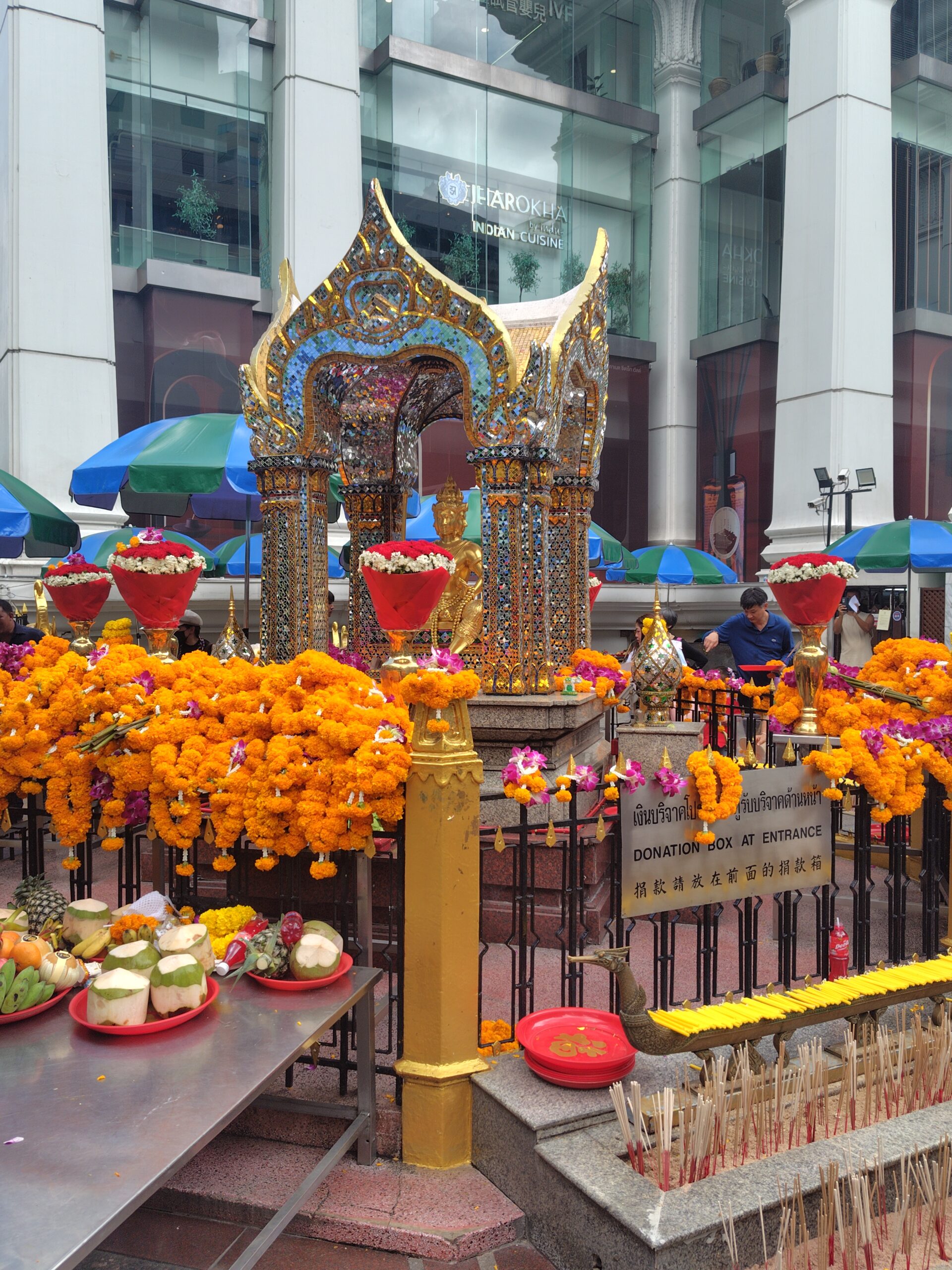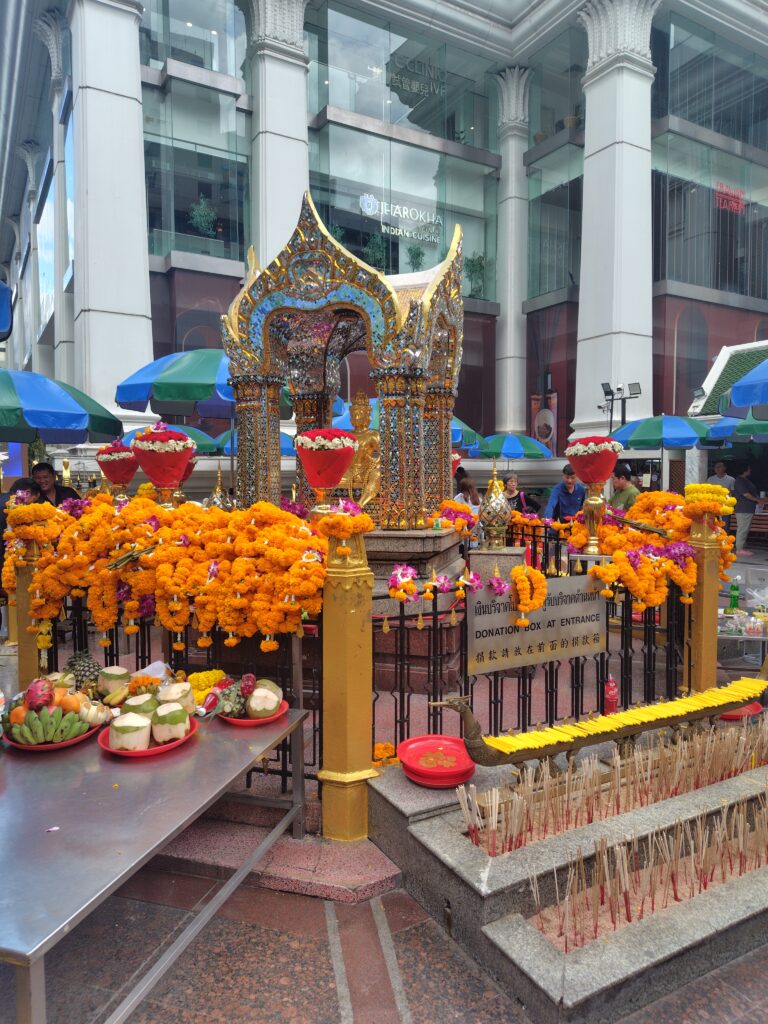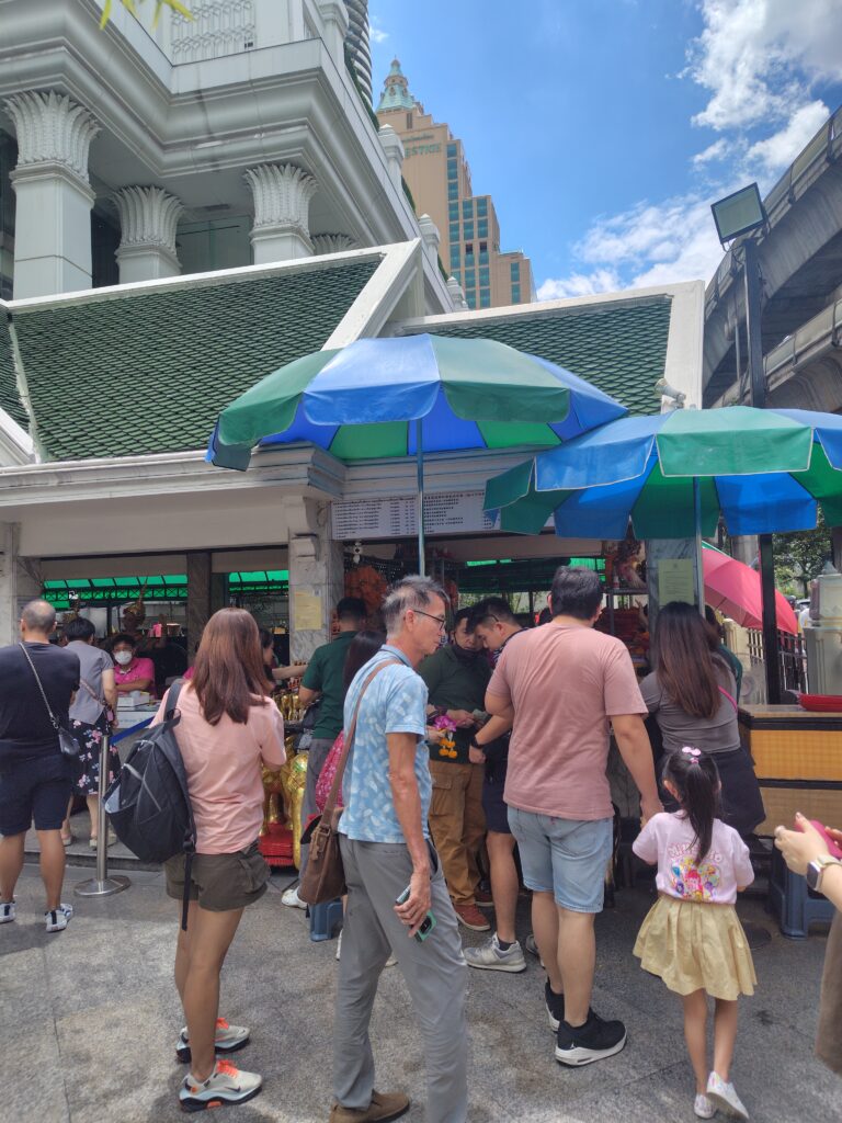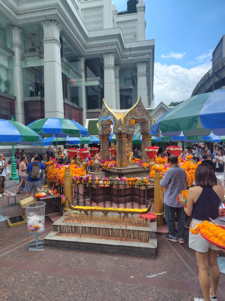 次に向かったのは、**「願いが叶う」と有名なエラワン祠(Erawan Shrine)**です。