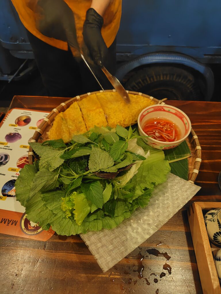 ここはベトナム風オムレツ「バインセオ」の有名店で、美味しいと噂のお店です。