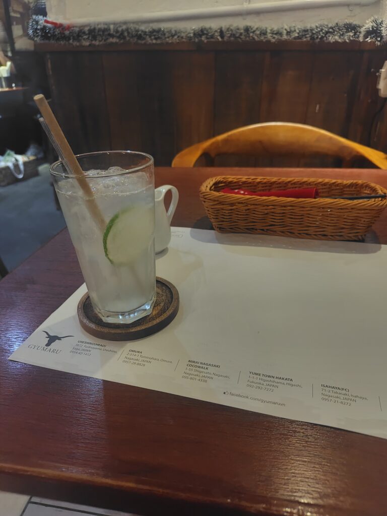 まずは飲み物でレモンソーダ。祝杯や~~。