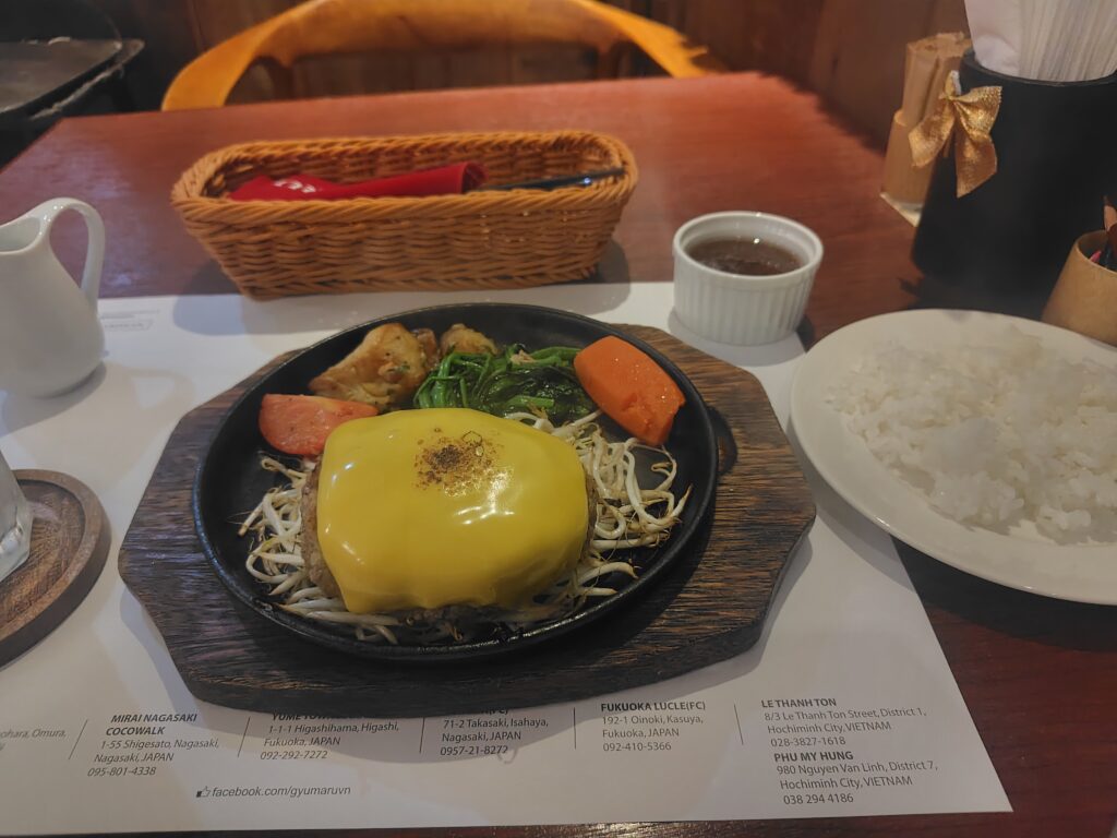 頼んだのは鉄板チーズハンバーグの170g。