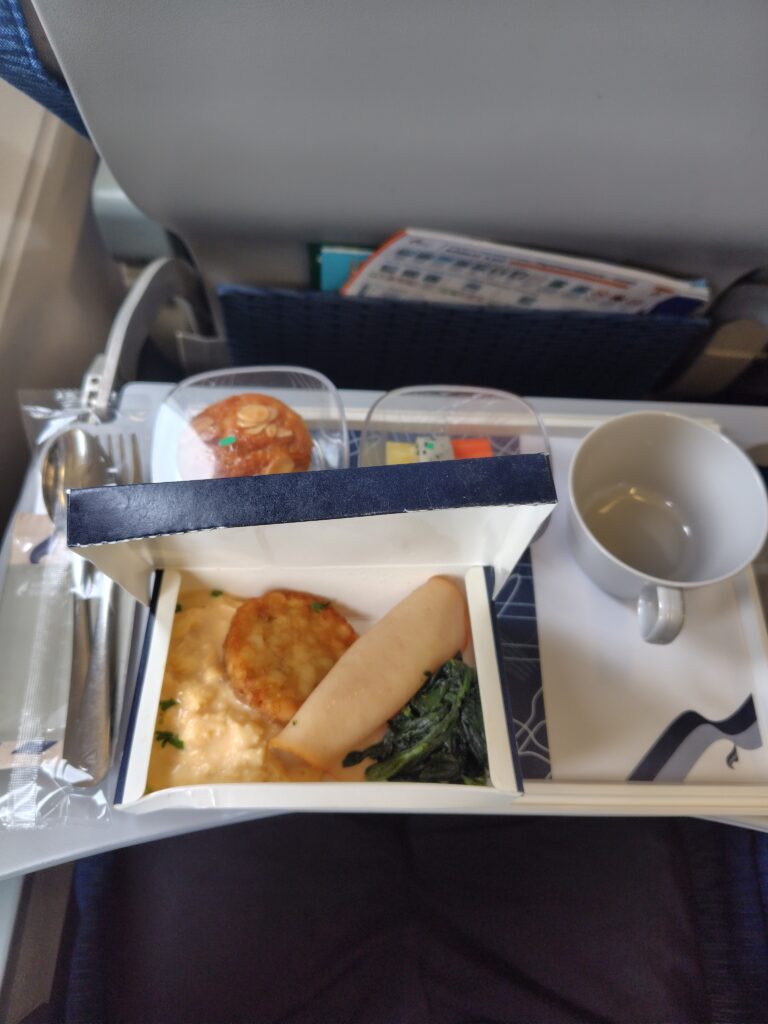 朝ごはんの機内食は、まさに “The 朝食” って感じでした🍳笑