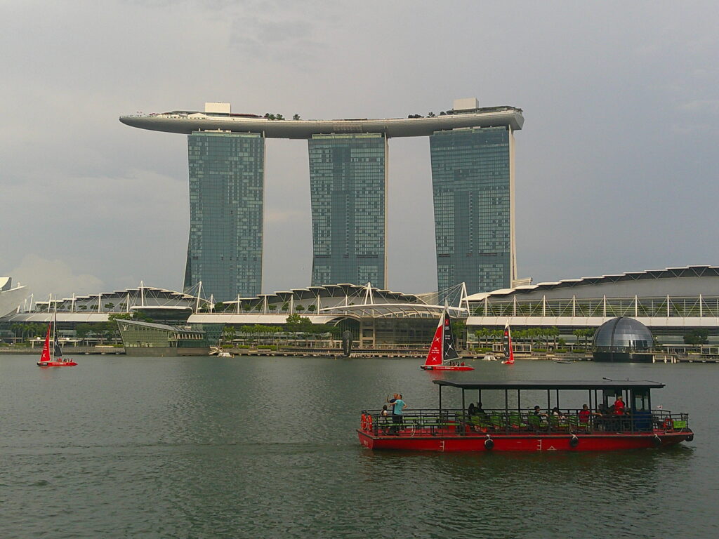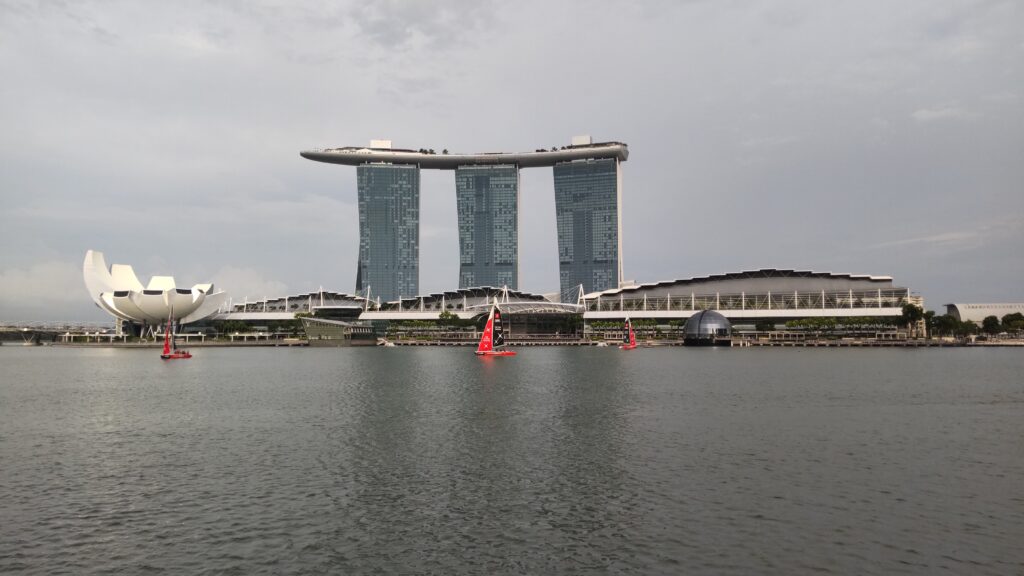 マーライオンの前に広がるマリーナ・ベイでは、